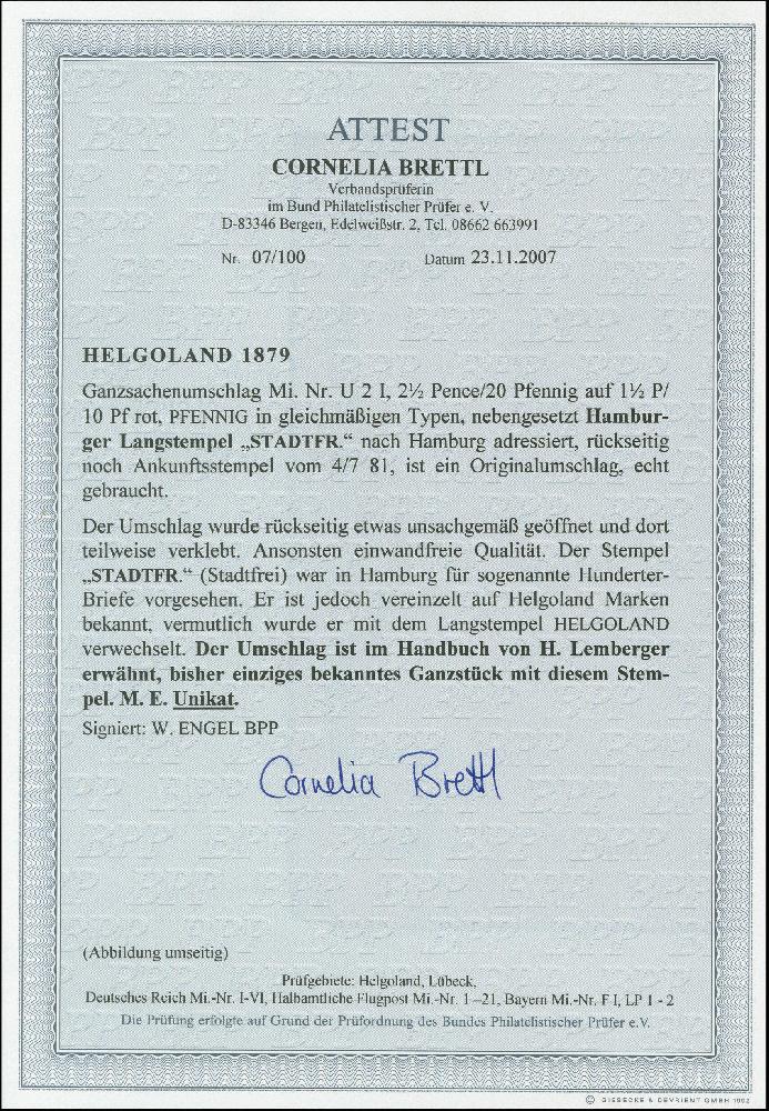 | Prüfer: | Brettl, Cornelia (BPP (Bund Philatelistischer Prüfer)) |