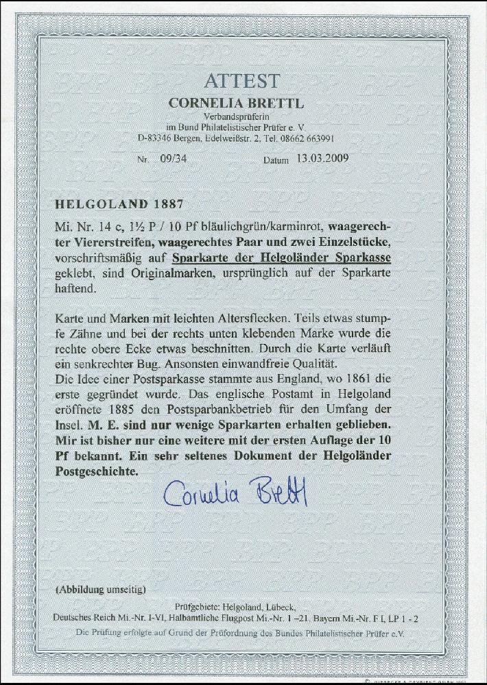 | Prüfer: | Brettl, Cornelia (BPP (Bund Philatelistischer Prüfer)) |