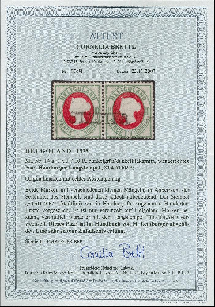 | Prüfer: | Brettl, Cornelia (BPP (Bund Philatelistischer Prüfer)) |