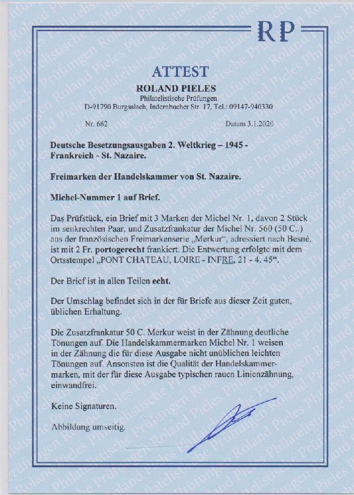 | Prüfgebiet: | Deutsche Besetzung WK 2 Frankreich St. Nazaire |