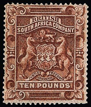 | Zusatzinformationen und Suchstichworte: | Rauhut & Kruschel - 227. Auktion 6. September 2024 Los 4366 Britische Südafrika Gesellschaft Britische Südafrika-Gesellschaft (Rhodesien), 1892, 10 Pfd. braun, der Höchstwert in seltener postfrischer Erhaltung Ausruf 1.200,00 EUR |