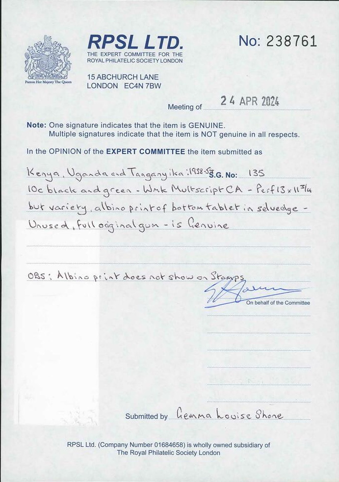| Prüfer: | RPSL, Royal Philatelic Society (Prüferkommission) |