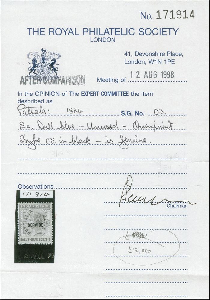 | Prüfgebiet: | Indien - Feudalstaat Patiala |