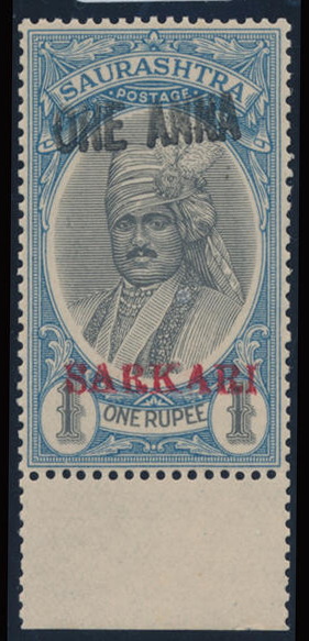 | Zusatzinformationen und Suchstichworte: | Doreen Royan & Associates Shop - Online Los 751222 Indien Staaten Soruth India/Soruth 1948 King George VI Official. ‘”ONE ANNA” on 1R. black and pale blue handstamped Surcharge. Lower marginal example. Superb unmounted mint condition Festpreis 1.250,00 GBP |