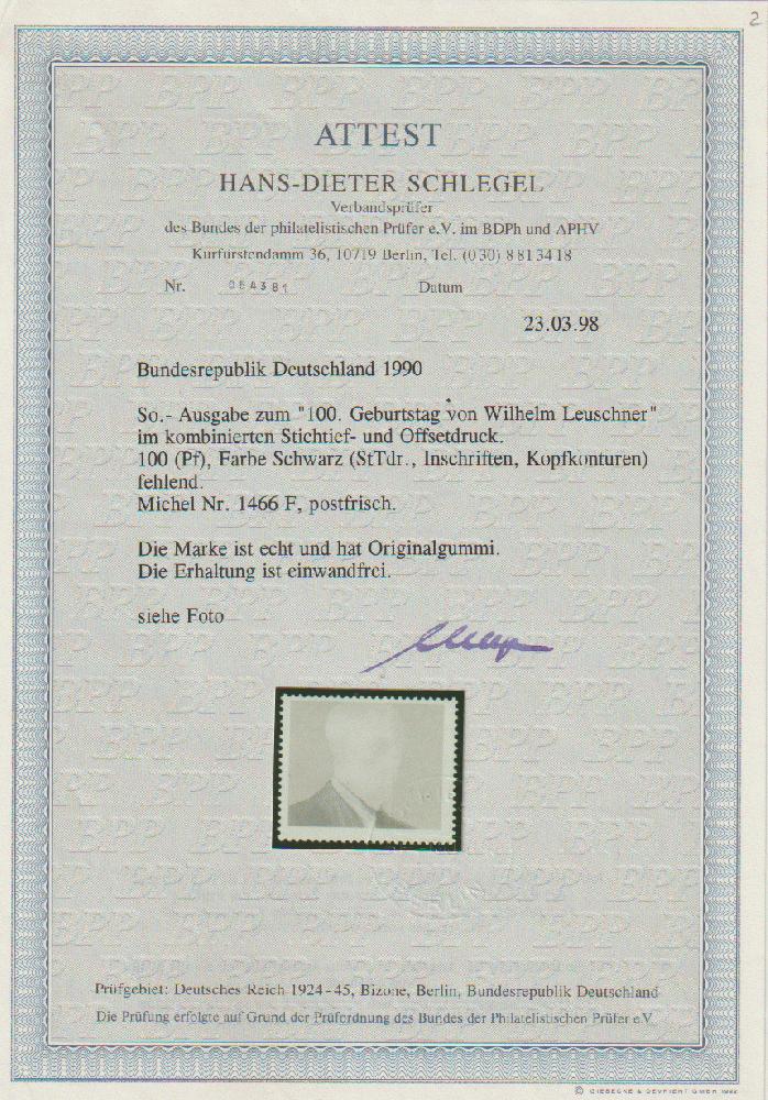 | Prüfer: | Schlegel, Hans-Dieter (BPP (Bund Philatelistischer Prüfer)) |
