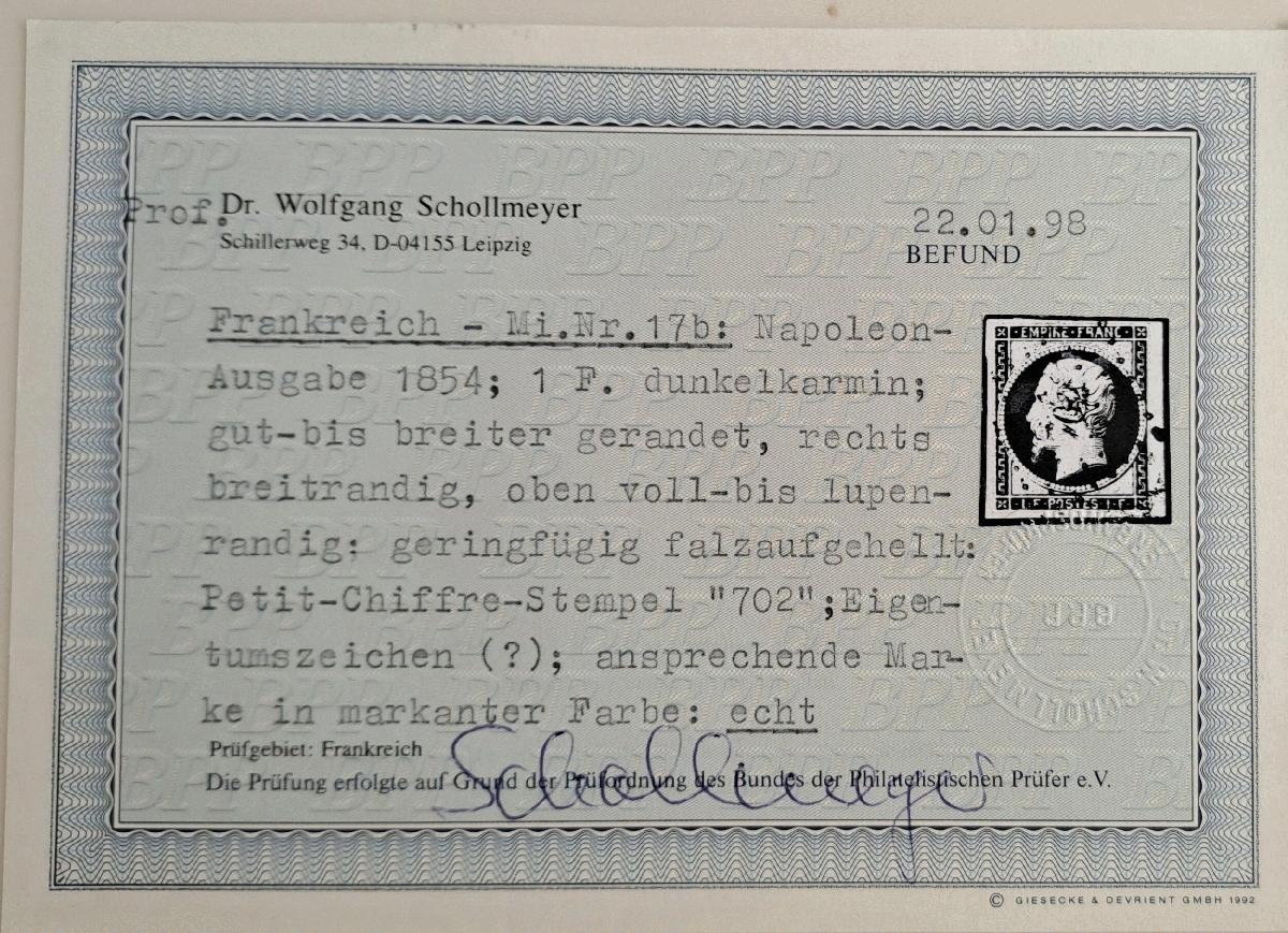 | Prüfer: | Schollmeyer, Wolfgang (BPP (Bund Philatelistischer Prüfer)) |