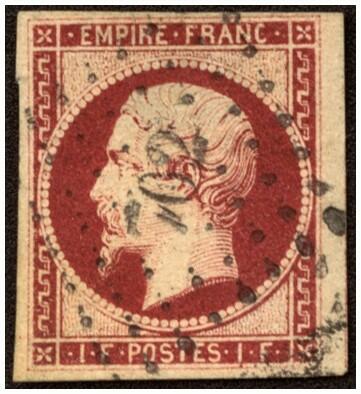 | Zusatzinformationen und Suchstichworte: | Austrophil - 183. Briefmarkenauktion 10. Oktober 2024 Los 38 Französische Post in der Levante 1854 Freimarke 1 Fr. dunkelkarmin, geringfügig Falz aufgehellt, 1854 rundum Lupen- bis breitrandig, markante Farbe! Ausruf 600,00 EUR |
