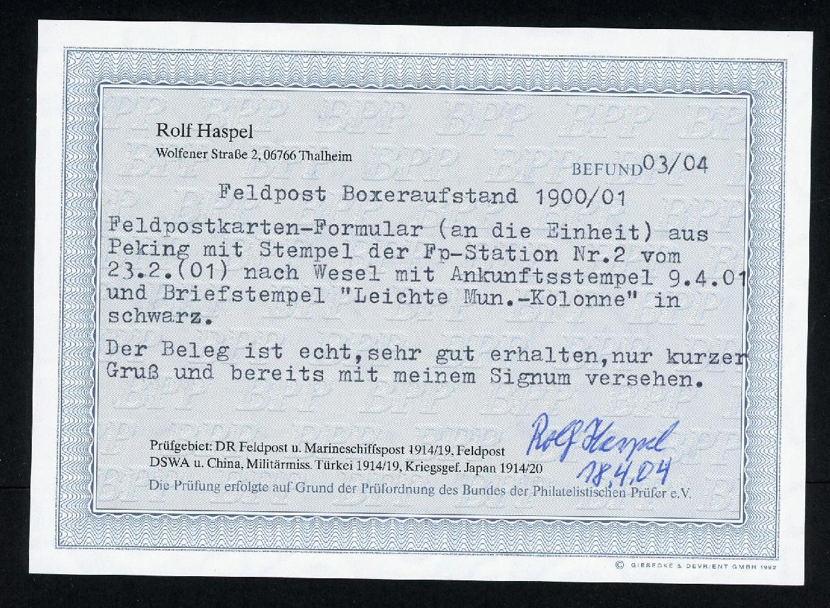 | Prüfgebiet: | Deutsche Auslandspostämter China |