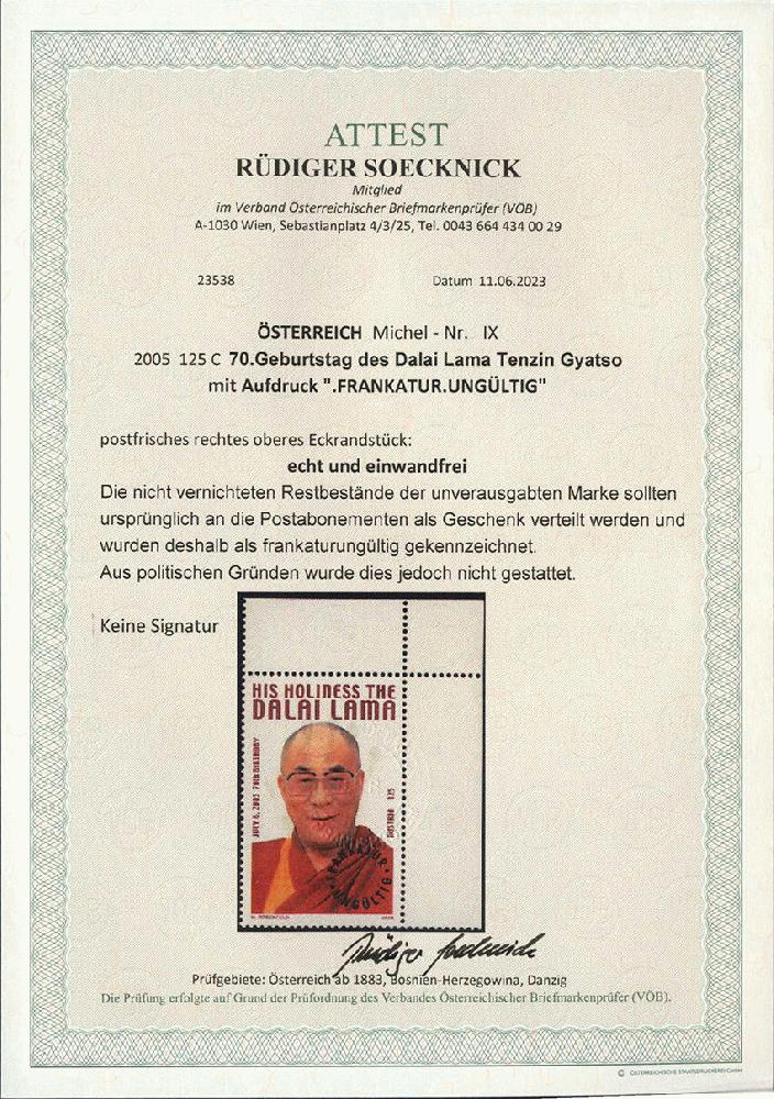 | Prüfer: | Soecknick, Rüdiger (VÖB (Verband Österreichischer Briefmarkenprüfer)) |