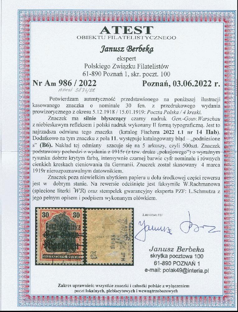 | Prüfer: | Berbeka, Janusz (PZF (Poln. Philatelisten-Verband - Polski Związek Filatel.)) |