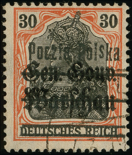 | Zusatzinformationen und Suchstichworte: | Heinrich Köhler 384. Auktion 19./20., 23. - 28. September 2024 Los 1364 Polen 1918, Germania 30 pfg. Stück Druck, "Gen.-Gouv. Warschau" mit glänzend Überdruck, gedruckt von Position 11 mit Aufdruckabart "erhobener s in Polska", gebraucht, winzig dünn, sonst in Ordnung, signiert Schmutz und sonstige und Atteste Berbeka (2022) und Petriuk (2022) (Fischer Nr. 14IIab B6) Zuschlag 340,00 EUR |