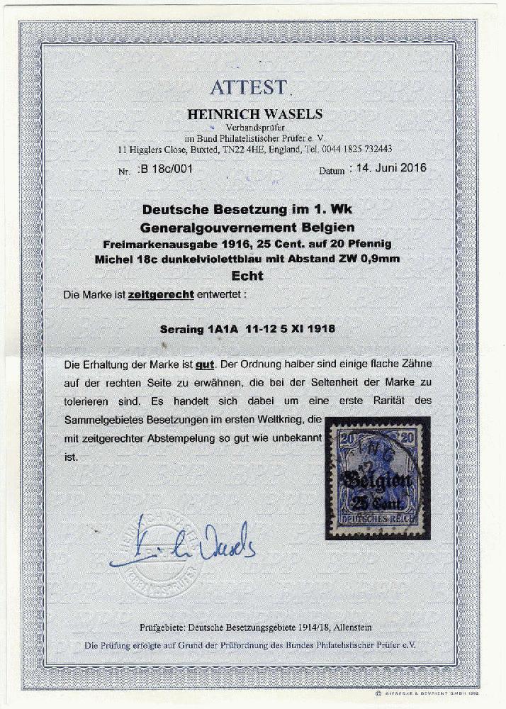 | Prüfgebiet: | Deutsche Besetzung WK 1 Belgien |