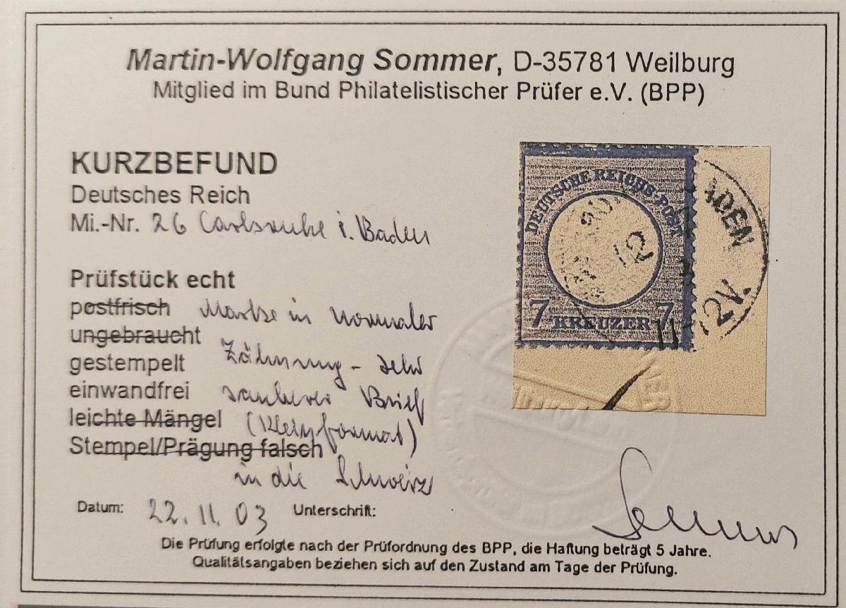 | Prüfer: | Sommer, Martin-Wolfgang (BPP (Bund Philatelistischer Prüfer)) |
