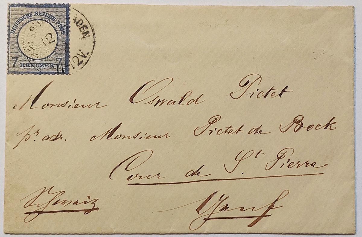 | Zusatzinformationen und Suchstichworte: | Brief aus Carlsruhe in die Schweiz, Stempel: Carlsruhe i. Baden, Marke normale Zähnung, sehr sauberer Brief |