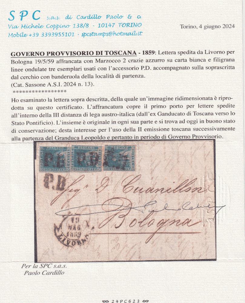 | Zusatzinformationen und Suchstichworte: | Besonderheit: Brief aus der Übergangszeit vom 28.4.1859 bis zur Ausgabe der neuen Briefmarken der Provisorischen Übergangsregierung am 1.1.1860. |