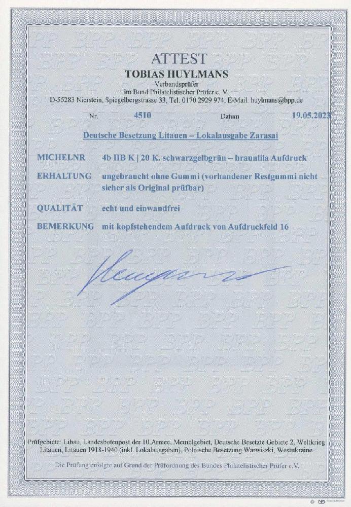 | Prüfgebiet: | Deutsche Besetzung WK 2 Litauen Zarasai |