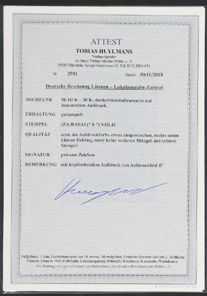 | Prüfgebiet: | Deutsche Besetzung WK 2 Litauen Zarasai |