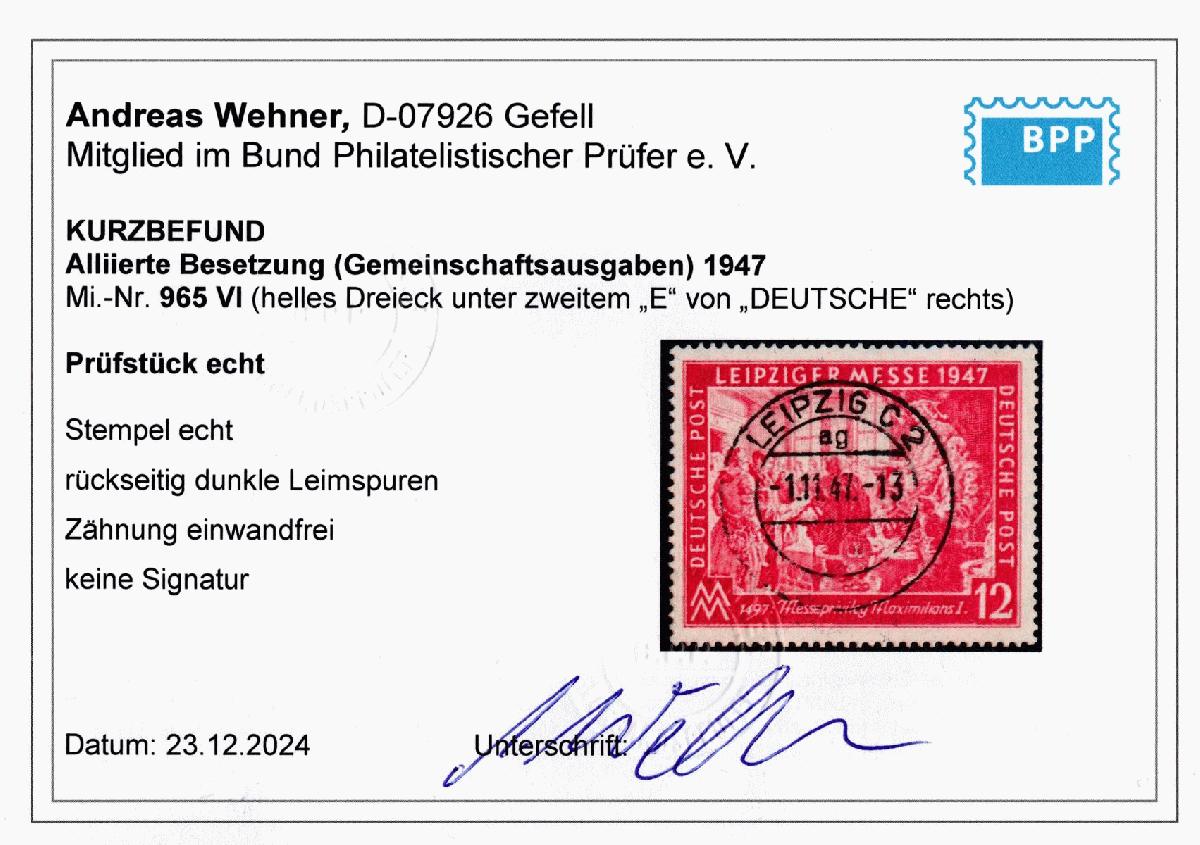 | Prüfer: | Wehner, Andreas (BPP (Bund Philatelistischer Prüfer)) |