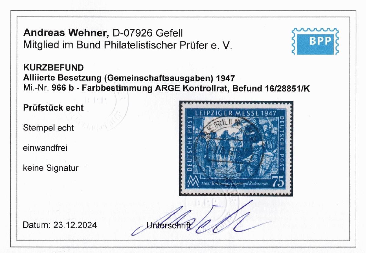 | Prüfer: | Wehner, Andreas (BPP (Bund Philatelistischer Prüfer)) |