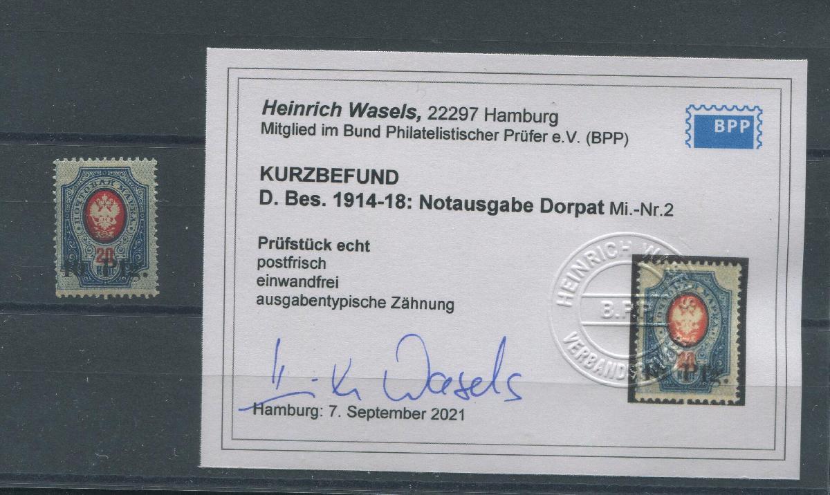 | Prüfgebiet: | Deutsche Besetzung WK 1 Postgebiet Ober Ost Dorpat |