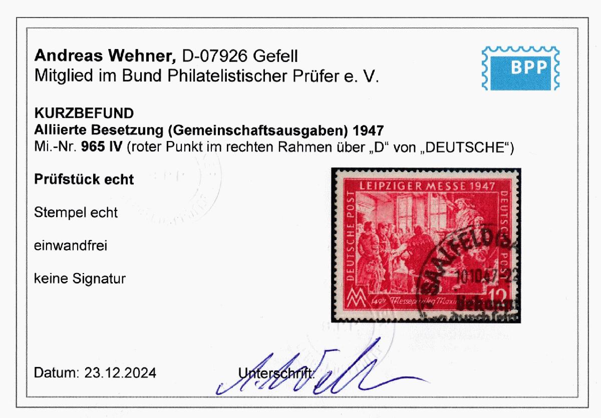 | Prüfer: | Wehner, Andreas (BPP (Bund Philatelistischer Prüfer)) |