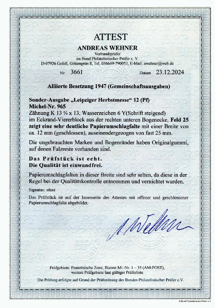 | Prüfer: | Wehner, Andreas (BPP (Bund Philatelistischer Prüfer)) |