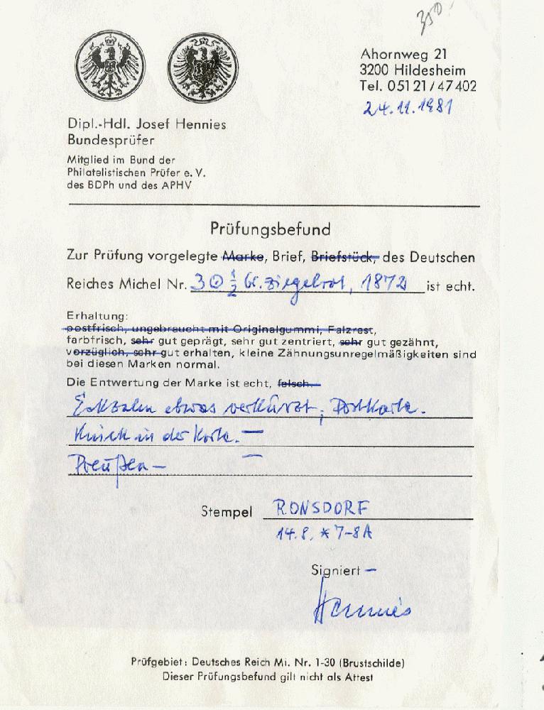 | Prüfer: | Hennies, Josef (BPP (Bund Philatelistischer Prüfer)) |