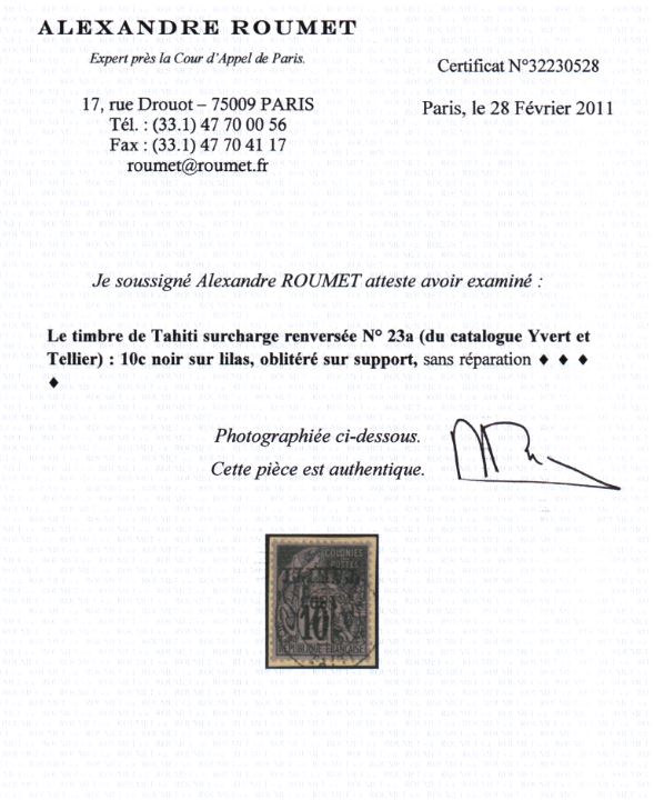 | Zusatzinformationen und Suchstichworte: | Ein gestempeltes Exemplar dieses Kopfstehers auf Abschnitt mit Attest Roumet wurde an der Robert A. Siegel # 1343 Auktion vom 27. Februar 2025 in New York unter Los 1714 für 600 US$ + Aufgeld verkauft. |