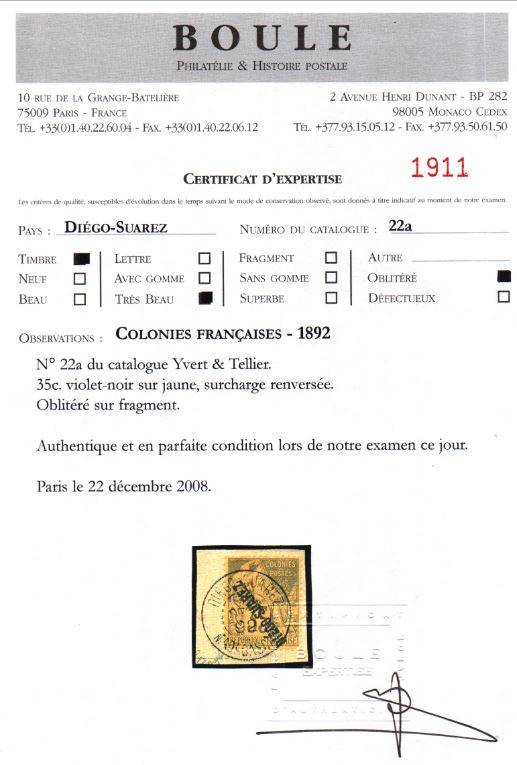 | Prüfgebiet: | Französisch Diégo Suarez |