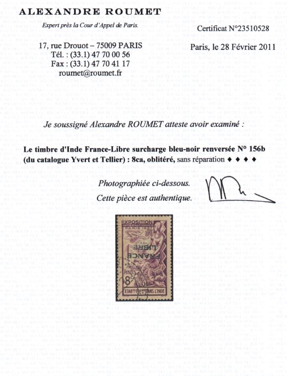 | Prüfgebiet: | Französisch Indien |