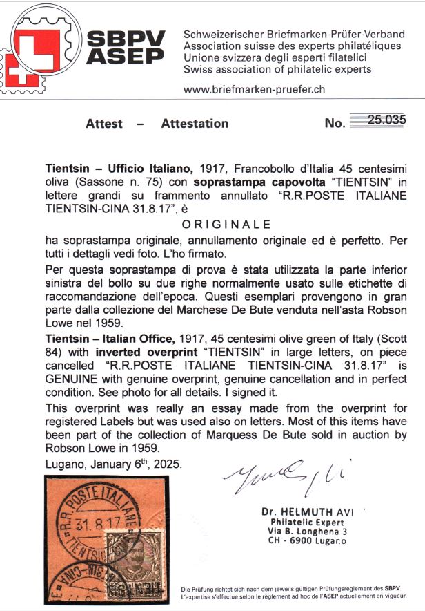 | Prüfer: | Avi, Helmuth (SBPV / ASEP (Schweizerischer Briefmarken-Prüfer-Verband)) |