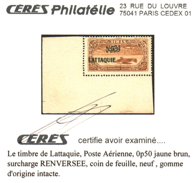 | Prüfer: | Cérès, Philatélie (Händlergarantien) |
