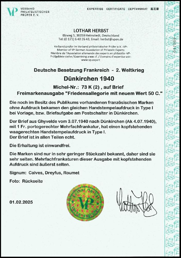 | Prüfgebiet: | Deutsche Besetzung WK 2 Frankreich Dünkirchen |