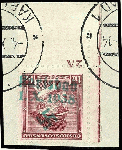 | Zusatzinformationen und Suchstichworte: | Ein gestempeltes Exemplar dieses Kopfstehers auf Abschnitt wurde an der 200. Dr. Reinhard Fischer Auktion vom 4. April 2025 in Bonn mit Attest Brunel unter Los 6386 für 1‘000 € + Aufgeld verkauft. |