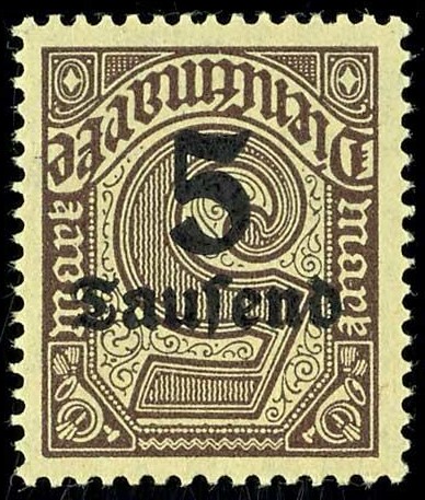 | Zusatzinformationen und Suchstichworte: | Ein ungebrauchtes Exemplar dieses Kopfstehers wurde an der 200. Dr. Reinhard Fischer Auktion vom 2. April 2025 in Bonn mit Befund unter Los 1154 für 12 € + Aufgeld verkauft. |