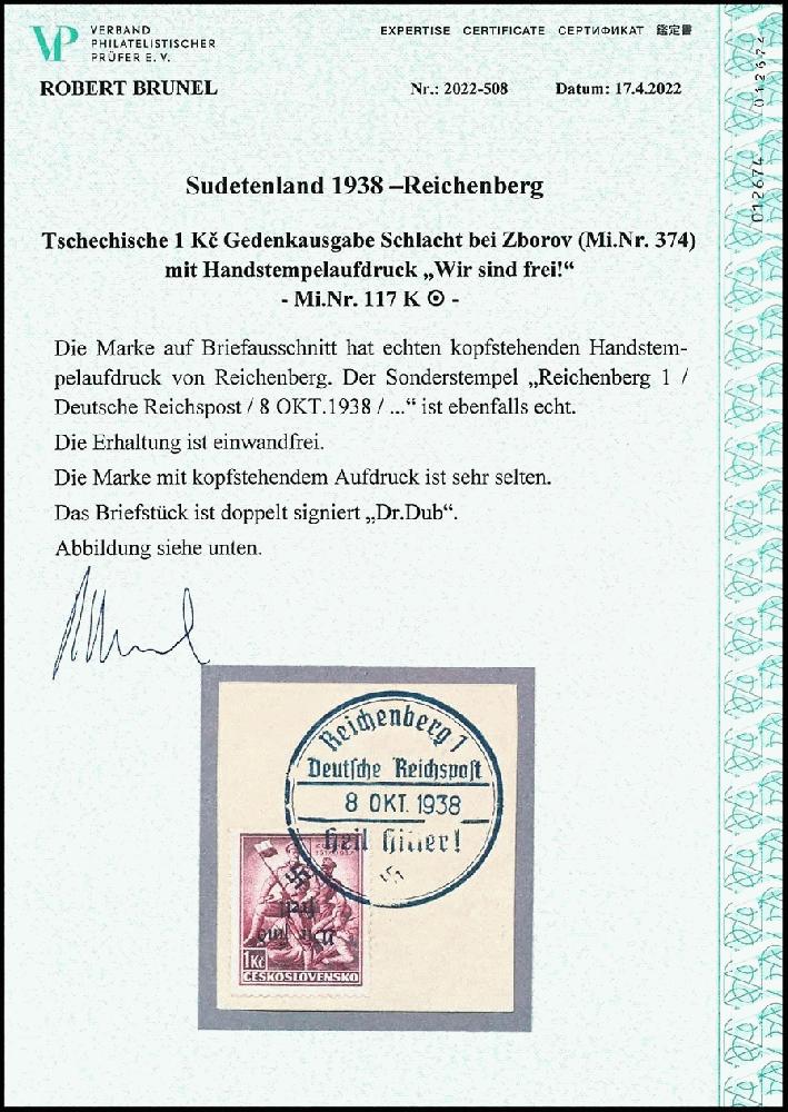 | Zusatzinformationen und Suchstichworte: | Ein gestempeltes Exemplar dieses Kopfstehers auf Abschnitt wurde an der 200. Dr. Reinhard Fischer Auktion vom 4. April 2025 in Bonn mit Attest Brunel unter Los 6547 für 1‘200 € + Aufgeld verkauft. |