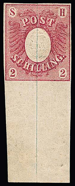 | Zusatzinformationen und Suchstichworte: | Rauhut & Kruschel - 234. Auktion 26. Juli 2025 Los 1984 Altdeutschland Schleswig Holstein 2 Sch. rosa, Abart "Doppelprägung des Wappen-Mittelstücks", ungebrauchtes Luxusstück mit enormem 29mm breitem unterem Bogenrand, Attest Möller. Mi. 3800,- Ausruf 700,00 EUR |