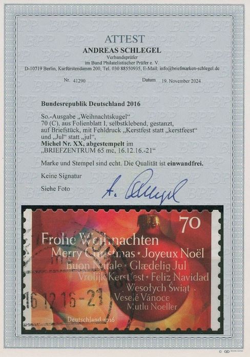 | Prüfer: | Schlegel, Andreas (BPP (Bund Philatelistischer Prüfer)) |