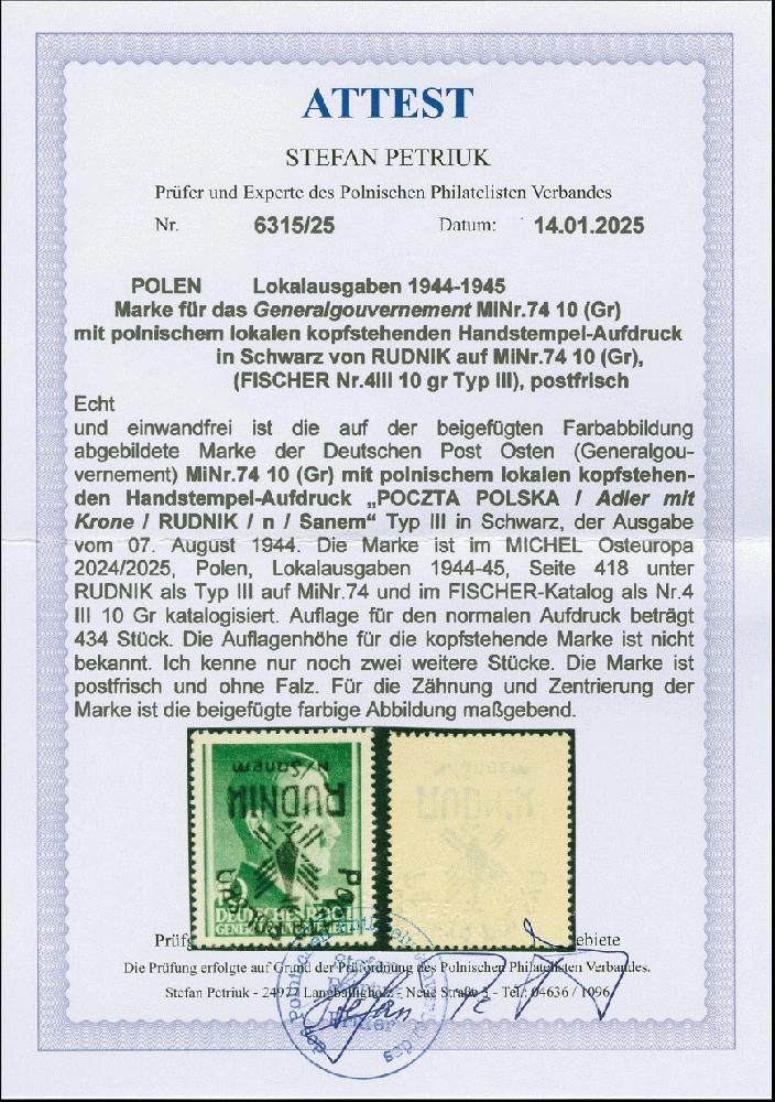 | Prüfgebiet: | Polen - Lokalausgaben Rudnik |