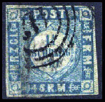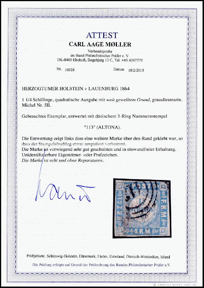 | Zusatzinformationen und Suchstichworte: | Württembergisches Auktionshaus 140. Versteigerung Auktionstermin: 17. - 18. Juni 2022 Los 3217 Altdeutschland Schleswig Holstein 1¼ Sch., weit gewellter Grund, Kabinettstück, ringsum tadellos geschnitten und mit Dreiringstempel "113" ALTONA entwertet. Schönes Stück dieser Altdeutschland-Rarität, Fotoattest Möller BPP. Katalogpreis: 3.500,- Ausruf 1.500,00 EUR |
