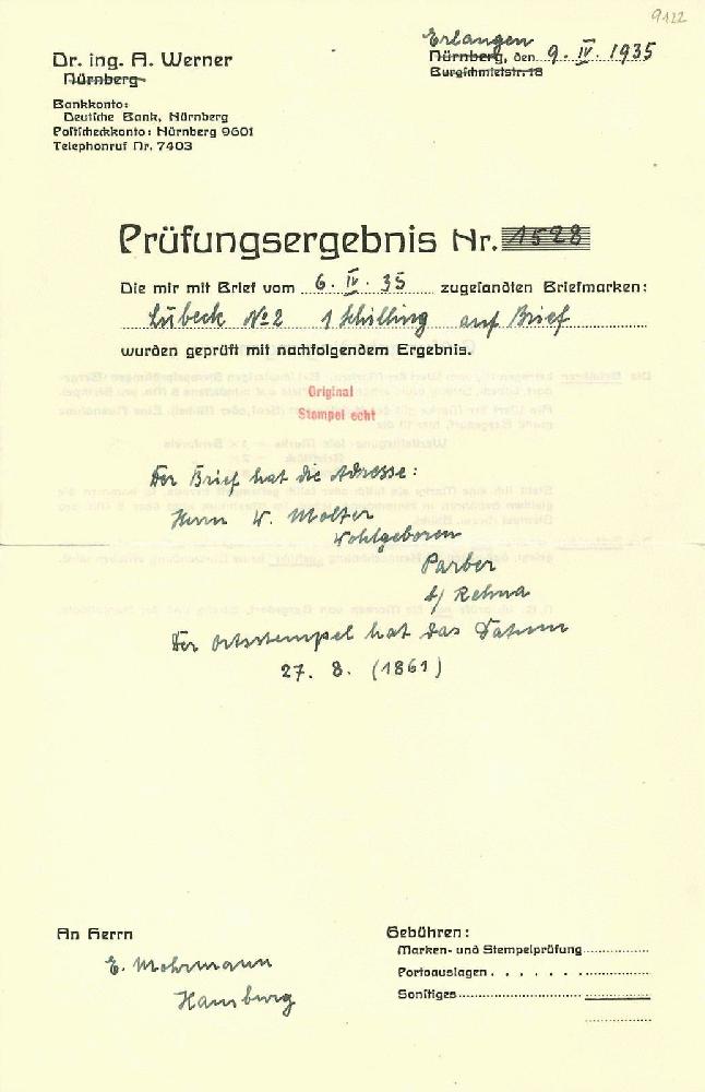 | Prüfgebiet: | Altdeutschland Lübeck |