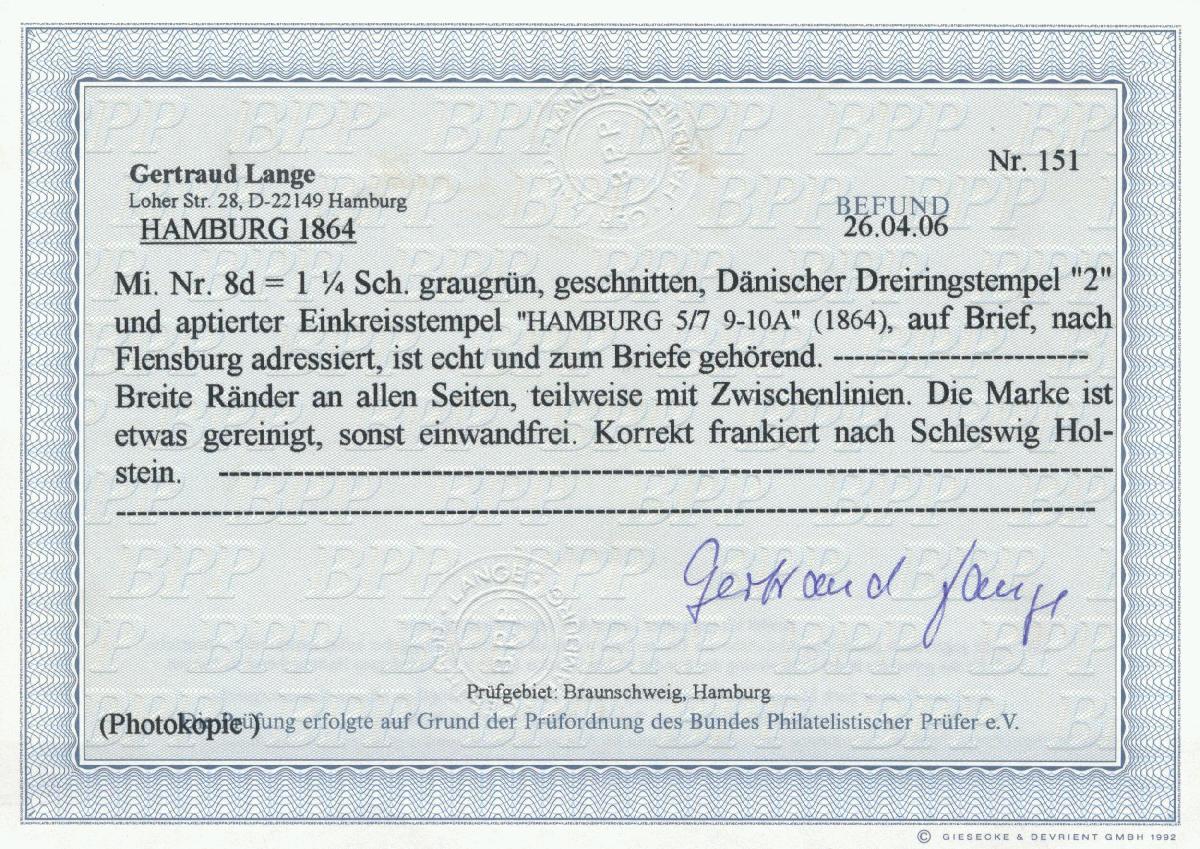 | Prüfer: | Lange, Gertraud (BPP (Bund Philatelistischer Prüfer)) |