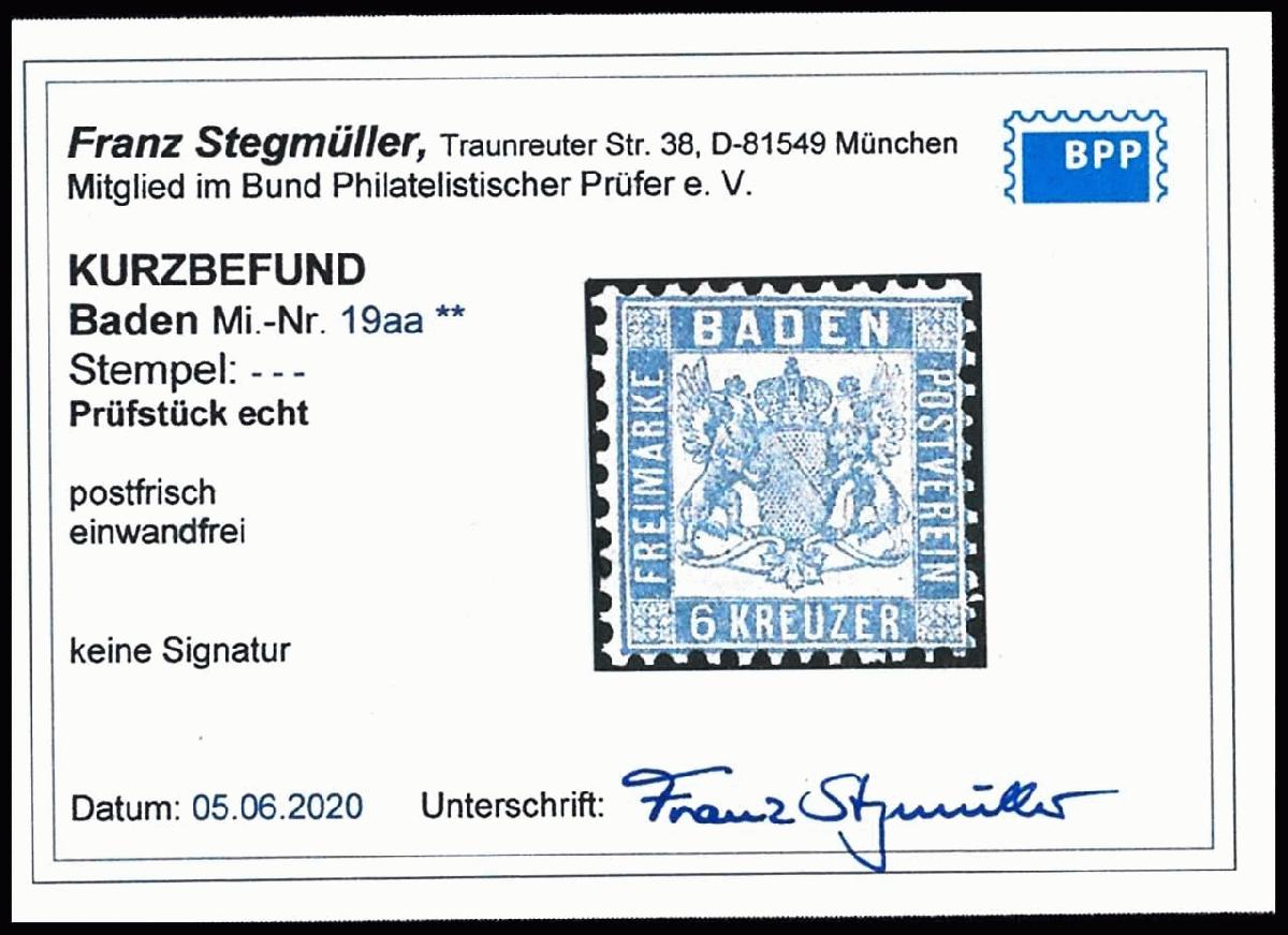 | Zusatzinformationen und Suchstichworte: | Dr. Reinhard Fischer 186. Auktion Auktionstermin: 18. - 21. Mai 2022 Los 1361 Altdeutschland Baden 6 Kr. Wappen hellgrauultramarin, postfrisch mit vollständiger Originalgummierung, unsigniert, tadellose Erhaltung, sehr schönes Kabinettstück der besseren Farbe in taufrischer Erhaltung, Kurzbefund Stegmüller BPP (2020): echt, postfrisch, einwandfrei." Zuschlag 160,00 EUR |