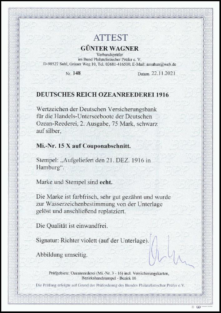 | Prüfgebiet: | Deutsches Reich Schiffspost im Ausland Ozeanreederei 1916/17 |