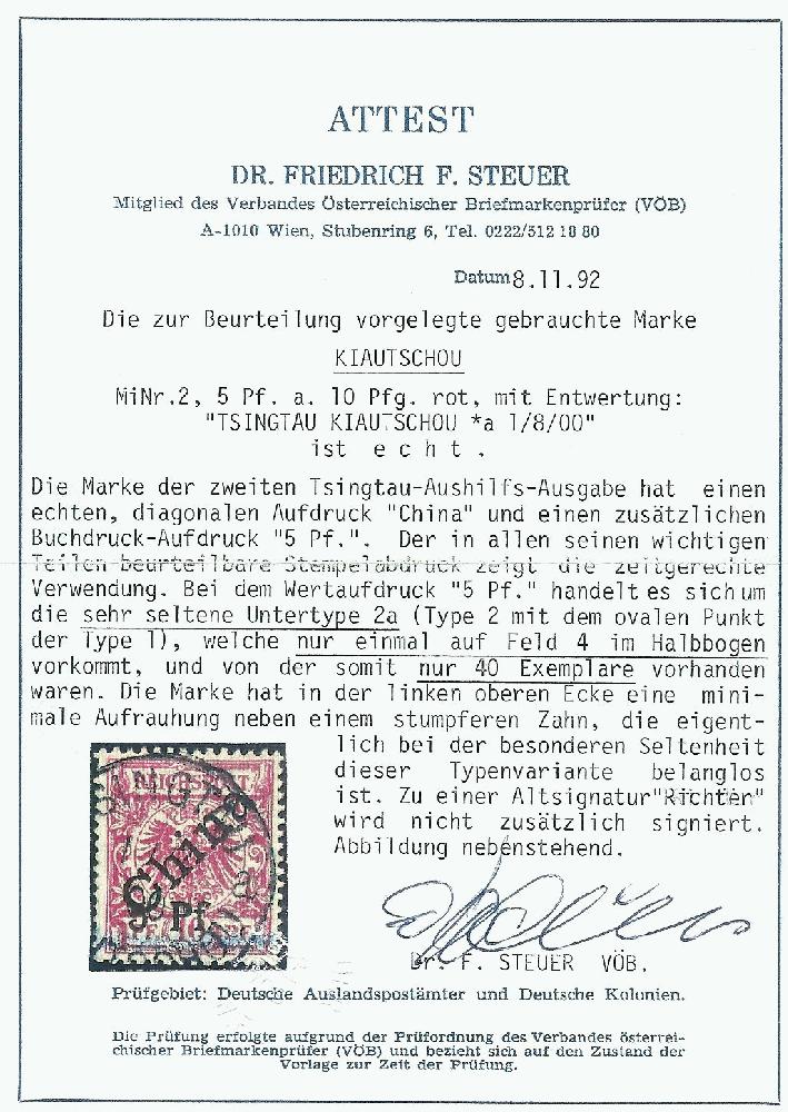 | Prüfer: | Steuer, Friedrich F. (VÖB (Verband Österreichischer Briefmarkenprüfer)) |