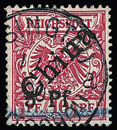 | Zusatzinformationen und Suchstichworte: | Rauhut & Kruschel - 211. Auktion Auktionstermin: 21. Mai 2022 Los 4267 Deutsche Kolonien Kiautschou 5 Pfg. a. 10 Pfg. rot, zweite Tsingtau-Aushilfs-Ausgabe, sauber gestempelt "Tsingtau 1/8/00", in der sehr seltenen Untertype 2a (Type 2 mit dem ovalen Punkt der Type 1), welche nur auf Feld 4 im Halbbogen vorkommt, somit auch nur gesamt 40 Exemplare hergestellt und eine ausserordentlich seltene Marke, links oben ein Zahn leicht verkürzt (belanglos), Mi. ohne Preis, Attest Steue Ausruf 2.000,00 EUR https://www.philasearch.com/de/i_9209_406363/205_Deutsche_Kolonien_Kiautschou/9209-A211-4267.html?set_sprache=de&treeparent=COSUBGRP-10040%2CCO-205&postype=PH&indexTableId=0&breadcrumbId=1655272557.3057&row_nr=14 |