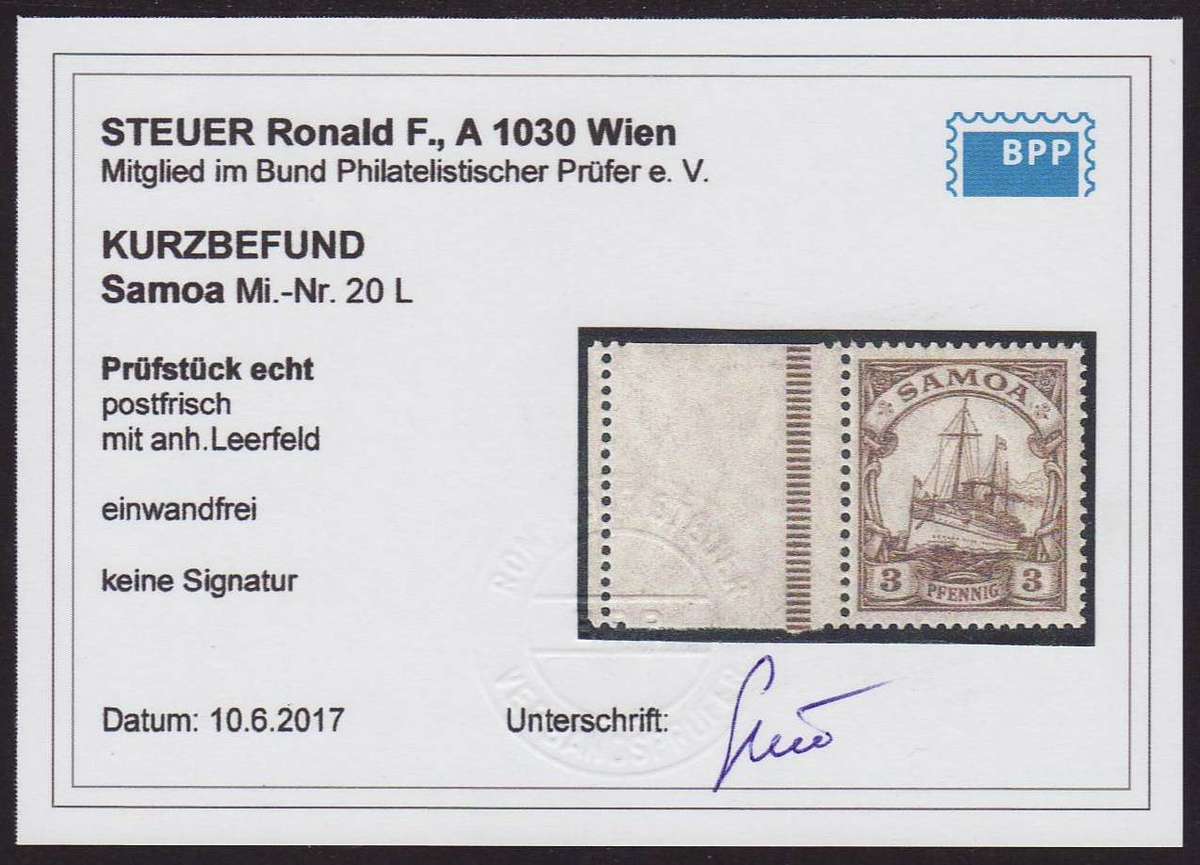 | Prüfgebiet: | Deutsche Kolonien Samoa |
