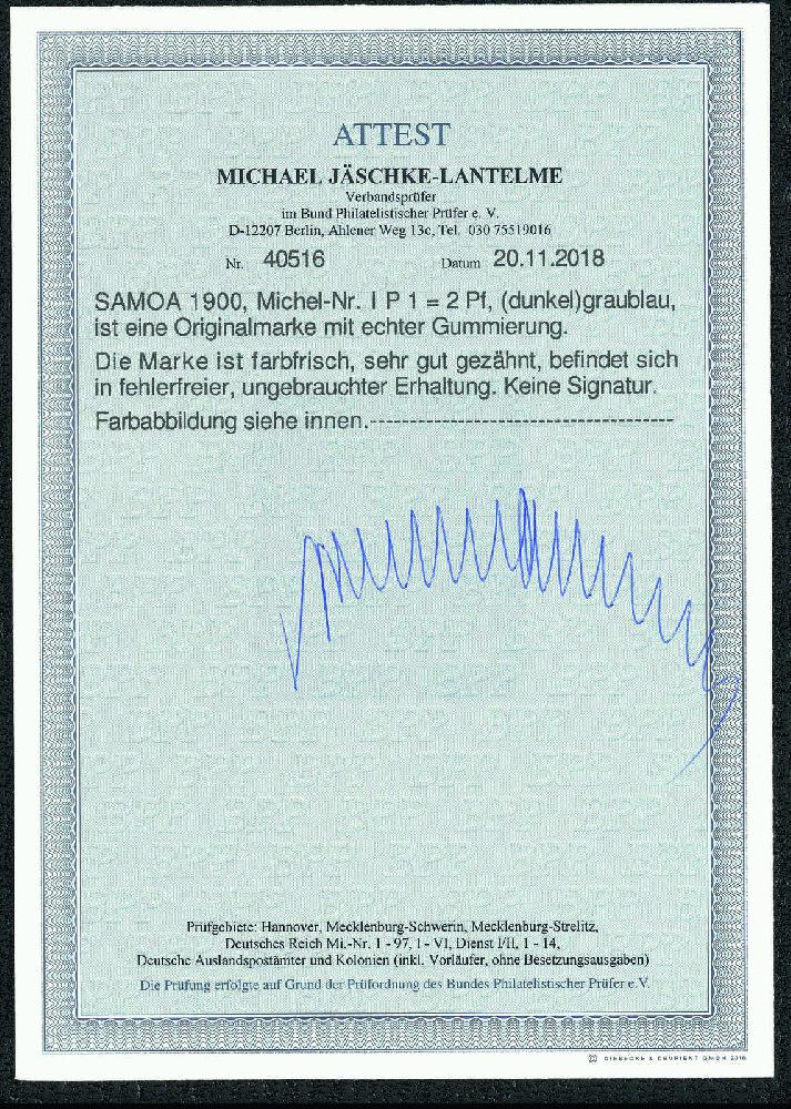 | Prüfer: | Jäschke-Lantelme, Michael (BPP (Bund Philatelistischer Prüfer)) |