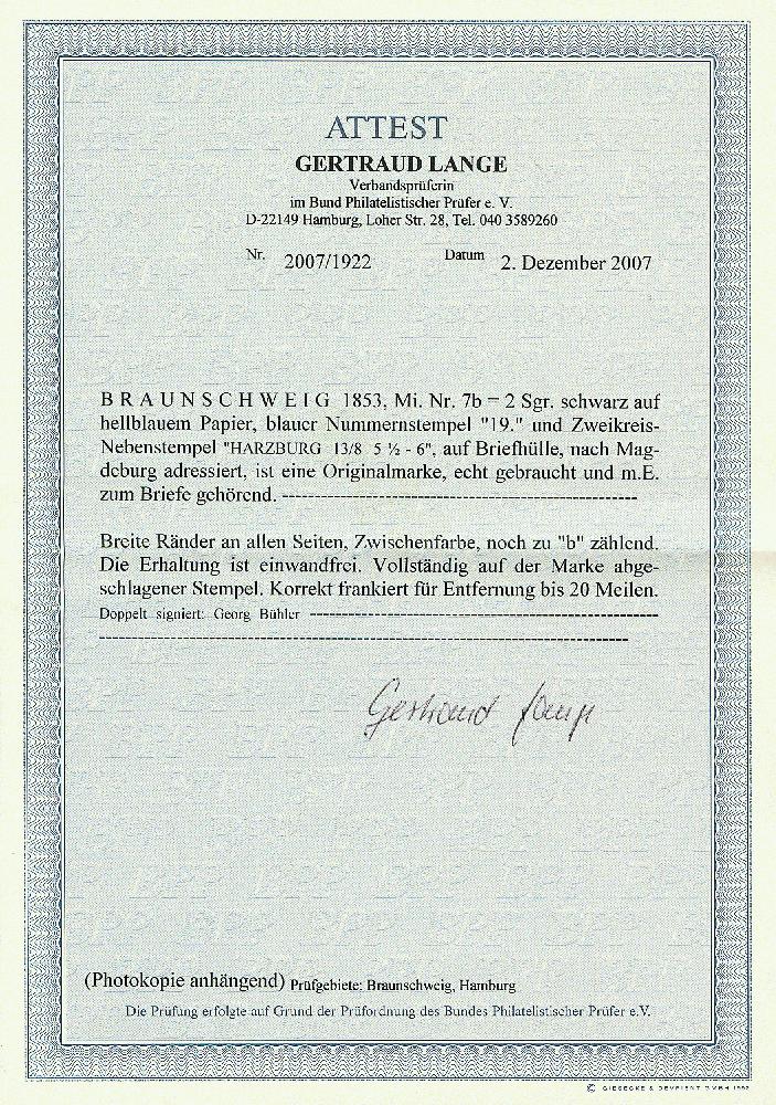 | Prüfgebiet: | Altdeutschland Braunschweig |