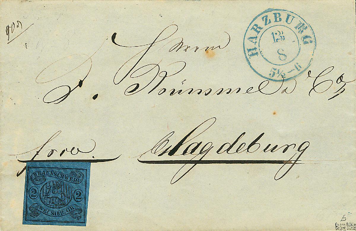 | Zusatzinformationen und Suchstichworte: | Dr. Derichs 165. Auktion Auktionstermin: 10. - 11. Juni 2022 Los 3250 Altdeutschland Braunschweig 2 Sgr. schw./hellblau, gute "b"-Farbe, vierseitig breitrandig als Einzelfrankatur auf Postvereinsbrief mit jeweils blauem Nummernstempel "19." bzw. Aufgabe-K2 "Harzburg 13/8" nach Magdeburg/Königreich Preußen. Luxus. Fotoattest Lange BPP: "Die Erhaltung ist einwandfrei.". (Michel 550.-). Zuschlag 380,00 EUR |